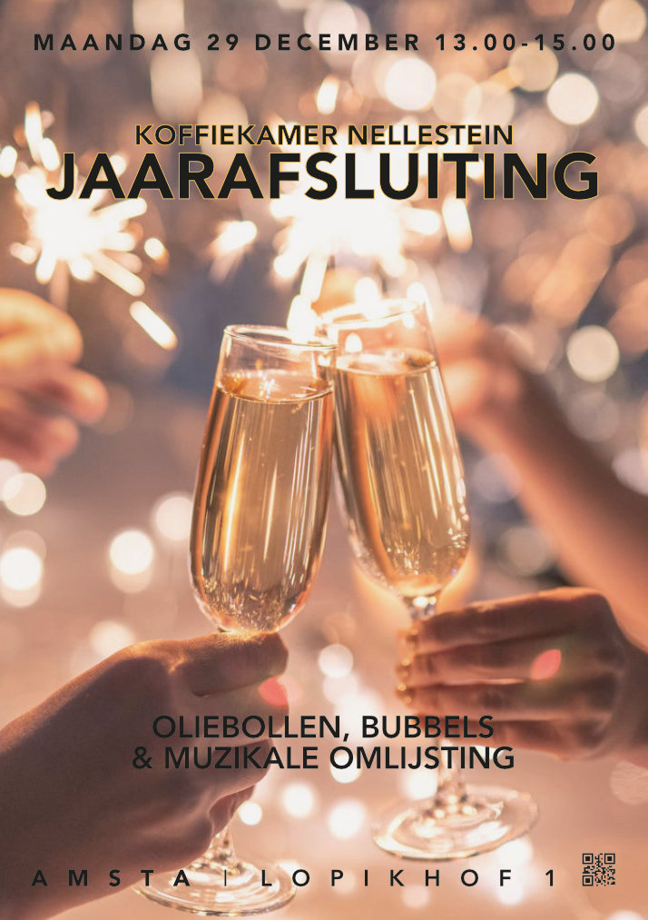 Koffiekamer Nellestein jaarafsluiting met oliebollen, bubbels & muzikale omlijsting.